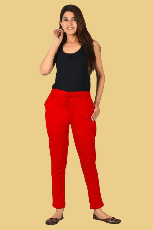 Solid Cotton Pants with Elastic waistband and Pockets for Her